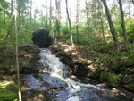 boards up to block inlet to culvert but overflowing on sides and sucking water into culvert, small head pond.