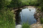 inlet severly deformed; bottom rot on outlet; dam estimated 130 feet downstream