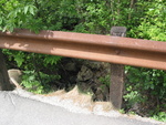 Potentially Impedes AOP. Upstream: 5.7m from culvert = granite foot path bridge blocking flow, no fish passage possible with the current flow. Stream downstream = mess because of construction on gravel road; sedimentation.