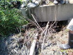 Concrete box culvert at inlet then turns into a metal round culvert 1m in. Inlet is dammed up by sticks and mud. Unpassable, only small amount of water getting through.