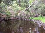 65 feet upstream is a posted natural barrier, see photo. A lot of backwash downstream of channel. Fill height estimated due to poison ivy.
