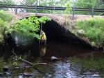 65 feet upstream is a posted natural barrier, see photo. A lot of backwash downstream of channel. Fill height estimated due to poison ivy.