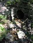 Potentially Impedes AOP. Culvert is rusted through; low level of water; (downstream:fallen tree + rocks =Barrier? (Temporary))