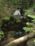 Potentially Impedes AOP. Culvert is rusted through; low level of water; (downstream:fallen tree + rocks =Barrier? (Temporary))