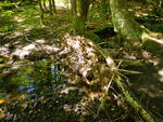 Fish present. Outlet rusted out. Series of woody debris piles (no evidence of beavers) downstream partially blocking flow.