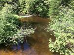 Box/ bridge w/ abutments, however has fill on top of structure.; Small dam made out of piled rock 40ft downstream