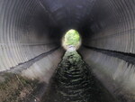Bridge # 5693. This appears to be a round culvert squeezed on the sides. the lower half is concrete lined full length, the upper is corrugated metal.