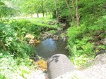 dam of piled rocks about 15 feet below the outlet creates a wading pool