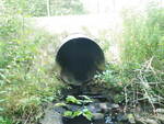 Bottom of outlet rusted out. Water flowing under the outlet.