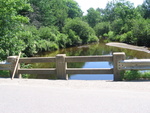 small concrete base is mostly silt covered now 0.7 m deep w/ no water, would have a 0.3 m drop