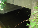 small concrete base is mostly silt covered now 0.7 m deep w/ no water, would have a 0.3 m drop