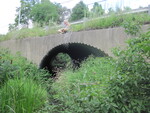 Fill: 1.4m. Old covered bridge upstream with a no trespassing sign on it.