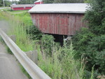 Fill: 1.4m. Old covered bridge upstream with a no trespassing sign on it.