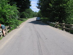 small concrete base is mostly silt covered now 0.7 m deep w/ no water, would have a 0.3 m drop