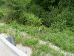Inlet substrate higher in the middle. Beaver cuttings around inlet. Debris jam downstream.