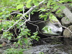 outlet deformed; and at an angle, water bouncing off right side hitting left side and shooting out outlet