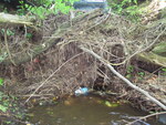 Fill: 1.45m. Inlet too blocked to take all measurements. Beaver activity. Small wooden footbridge upstream. Big chunk of bedrock besides outlet preventing a scour pool.