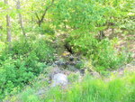 Washed out farm road approximatley 30 meters upstream that used to have culverts. Steep drop at old farmroad crossing that may create problems at low flows