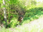 Washed out farm road approximatley 30 meters upstream that used to have culverts. Steep drop at old farmroad crossing that may create problems at low flows