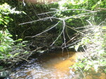 Almost 1M deep in scour pool. Sand bags on road edge downstream to prevent roadditch erosion.