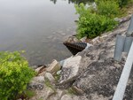Culvert between wetland and Pleasant Pond; no water velocity through culvert; "inlet" on wetland side, "outlet" on pond side but no flow between two water bodies; bank height above culvert 1.25