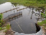 Culvert between wetland and Pleasant Pond; no water velocity through culvert; "inlet" on wetland side, "outlet" on pond side but no flow between two water bodies; bank height above culvert 1.25