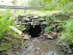 The pipe is broken in the middle and has shifted to create a bend. Inlet bottom is severly rusted. Sediment built up behind stone at inlet creating an inlet drop.