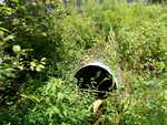 Crossing located downstream of golf course pond. Rusted out. Metal structure installed at inlet to hold flash boards.