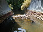 Cascade of small boulders located just before the oulet, within the structure (see photos). Cascade creates a surface water differencee of .25m and is approx. 2.5m in width.
