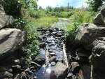 Very narrow span with lots of bedrock and steep section below outlet, all combine to make this crossing likely limiting to fish passage, and certainly to broader aquatic organism passage; upstream significant beaver dam also limit passage