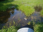 Damaged culvert directly above Shoreys Brook dam removal site, smaller culvert set inside the inlet to extend the structure