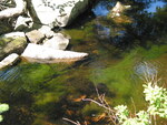 Partially Impedes AOP. Trout. Tar on the bottom to fix the culvert, holes in the culvert, little rock and wood dam upstream (8m), channelized (armoring not high enough when flow more important), downst: rock area, plan, no water at this time