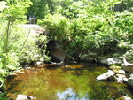 Partially Impedes AOP. Trout. Tar on the bottom to fix the culvert, holes in the culvert, little rock and wood dam upstream (8m), channelized (armoring not high enough when flow more important), downst: rock area, plan, no water at this time