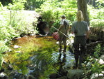 Partially Impedes AOP. Trout. Tar on the bottom to fix the culvert, holes in the culvert, little rock and wood dam upstream (8m), channelized (armoring not high enough when flow more important), downst: rock area, plan, no water at this time