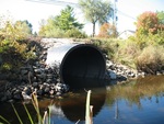 Inlet may be perched at low flow. Manmade dam about 75 feet downstream, private land. Impoundment may encompass scour pool.