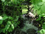Old unused stone slab bridge approx 50 feet upstream from this site, with a 3 foot cascade drop.