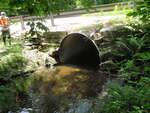 Old unused stone slab bridge approx 50 feet upstream from this site, with a 3 foot cascade drop.