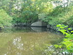 Unknown if culvert has bottom. Measurements estimated, very steep embankments, deep water, lots of poison ivy. Remnant dam or bridge upstream, cascade above that, known upstream beaver dams. Length estimated from orthophotos.