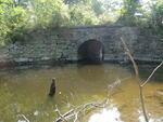 Uneven stone on bottom of culvert possibly granite slabs. newer crossing downstream from 20418. Inlet span and width estimated, appeared wider than outlet but may not be.