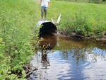 Sediment also from stream banks upstream. Bevaer fencing in front. Appears to be just cleared and drained impoundment. Debris dam clogging stream 20ft. From downstream end of culvert (100%).