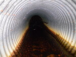 inlet rusted out, bottom gone. Culvert has a beaver dam inside it. Stone dam immediately upstream, site D168.