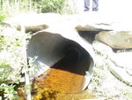 Upstream end of culvert has T-shaped plastic culvert at inlet (see photos). Both ends of the plastic culvert appeared to be capped off, but water was flowing out of the other end. And water could flow around this structure through the primary culvert. Not