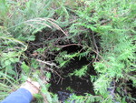 Fill: 0.75m. Inlet stream channel unclear, resembles wetland. Outlet flows into wetland rather than stream. Outlet largely blocked by shrubbery. Difficult to determine precise inlet/outlet measurements due to shrubbery and extreme overhanging embankment.