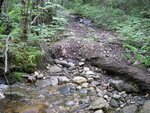 Significant erosion into stream from upaved ORV trail (which is an abandoned road) on both sides, especially the RL approach. Crossing substrate is cobble. Very deteriorated old log driving dam is about 25 meters upstram. Removed structure.