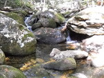 Outlet steps down to a pool. This site is about 50 meters above confluence of north and south branches of Goose Eye Brook.