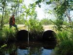 measurements from top at outlet, too much vegetation at outlet to get into stream. appears to be at stream grade. starting to rot at waterline