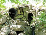 Old stone bridge buried. Water flows under the culvert. No fish passage possible. Secondary culvert is 1m above water level. Oval steel primary inlet buried and inaccessable.