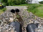 Water flowing under culverts. Cobble from road/ditches dominate as substrate at the inlet and outlet.