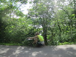 Fill: 2.7m. Crossing substrate is at inlet. Erosion on edge of road. Water comes out a few meters up culvert because bottom is rusted out. Outlet end of culvert looks new/replaced, middle is old/poor shape. Middle made with/supported by concrete blocks