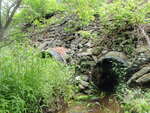 fencing across inlet. Water goes underground (under large pile of rocks downstream).
